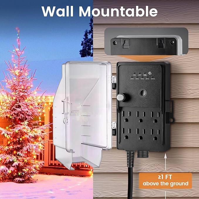 - Easy Installation and Wall Mountable: Designed with a thicker stake for easy insertion into hard ground; Wall mountable with two mounting holes on the back; Ideal for setting up Christmas lights, outdoor string lights, or seasonal decorations using the six-outlet outdoor power strip