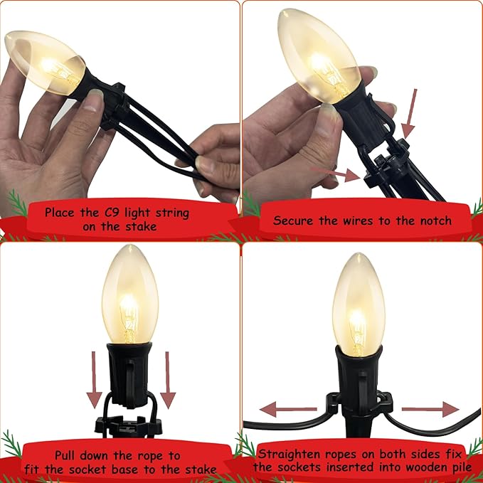 - Applicable Occasion: C9 Christmas pathway string lights with stakes, perfect for Christmas pathway, driveway, walkway, garden ground, and courtyard, separate and line up your personal area with bright gorgeous light, create your Christmas and holidays atmosphere, light up your ground pathway and create beauty at night.