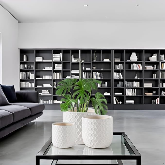 Docrin Ceramic Plant Pots Indoor: 6.5+5.3+4 Inch Planters with Drainage Holes for Home/Office - Set of 3 / White Honeycomb