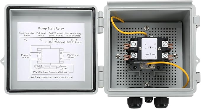 Briidea Irrigation Pump Start Sprinkler Relay, Waterproof Box, 2-Pole AC Contactor, 40A 24V Coil, Compatible with Pumps Up to 5HP