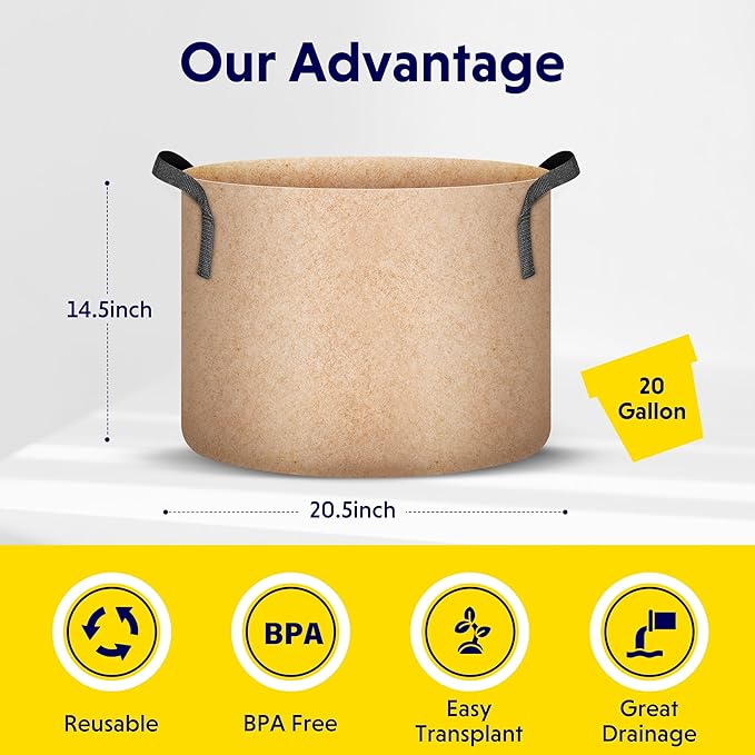 - Fabric Material: Made of 300g thickened nonwoven fabric, these pots are moderately permeable, environmentally friendly and BPA-free. Can be washed and reused for future seasons