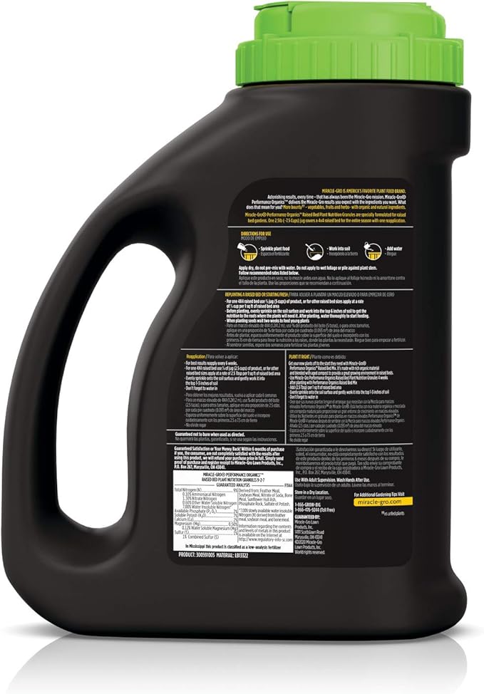 - Use Miracle-Gro Performance Organics Raised Bed Plant Nutrition Granules to feed vegetables, fruits, herbs, and flowers grown in raised beds