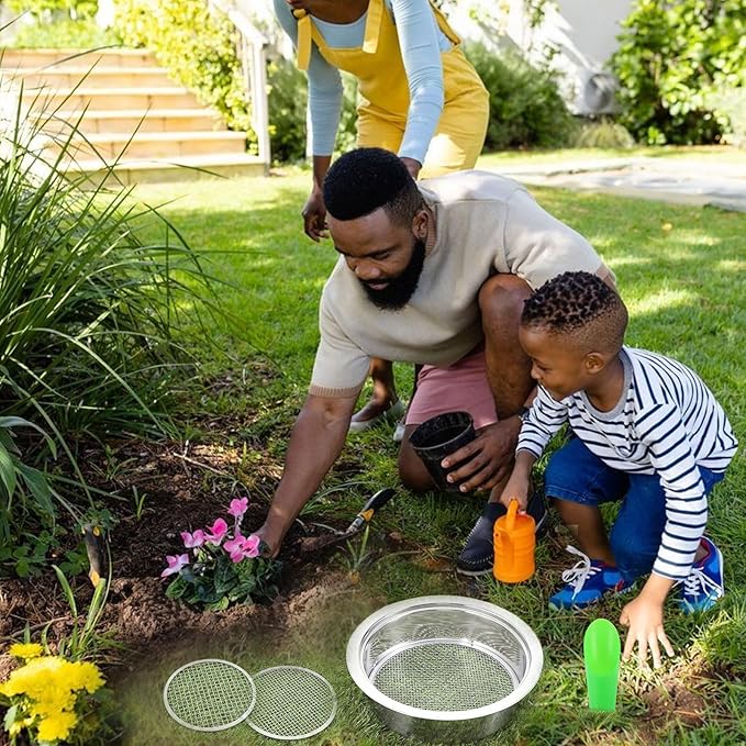 - 🌱【High Quality】Soil sifter is made of stainless steel, no welded seams, carefully polished, no burrs, high hardness, impact resistance, not easy about deformation, corrosion resistance, oxidation resistance, easy to clean, durable.