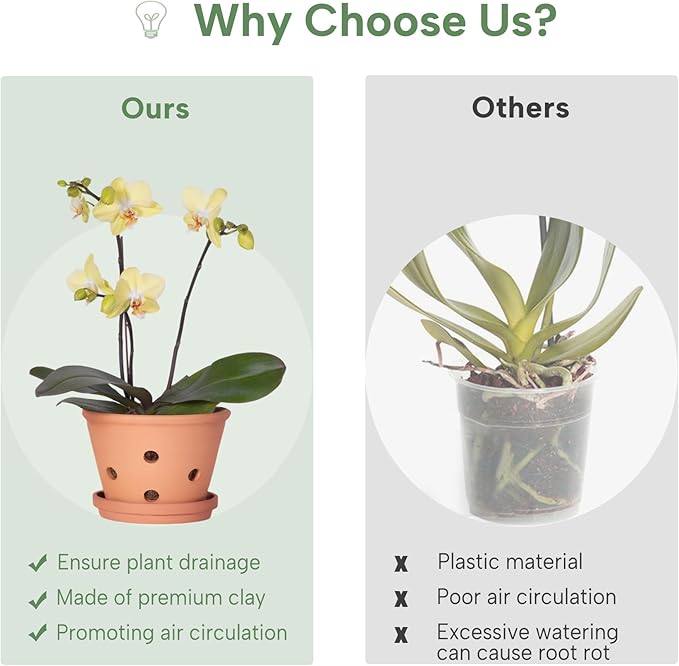 - Stunning Versatility: Whether you are potting a delicate Phalaenopsis or a robust Cattleya, these flower pots provide the perfect environment for your orchids to thrive. The terra cotta pots are suitable for a variety of plant types, including Orchids (Phalaenopsis, Dendrobium, Cattleya, etc), African Violets, Succulents, Monstera, Peace Lily, Snake Plants, Jade Plants, Herbs, Cacti and more