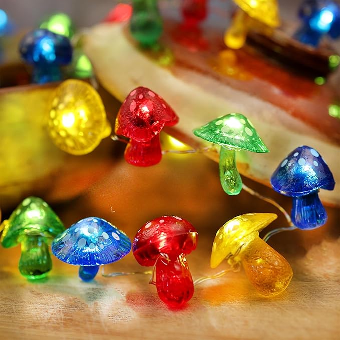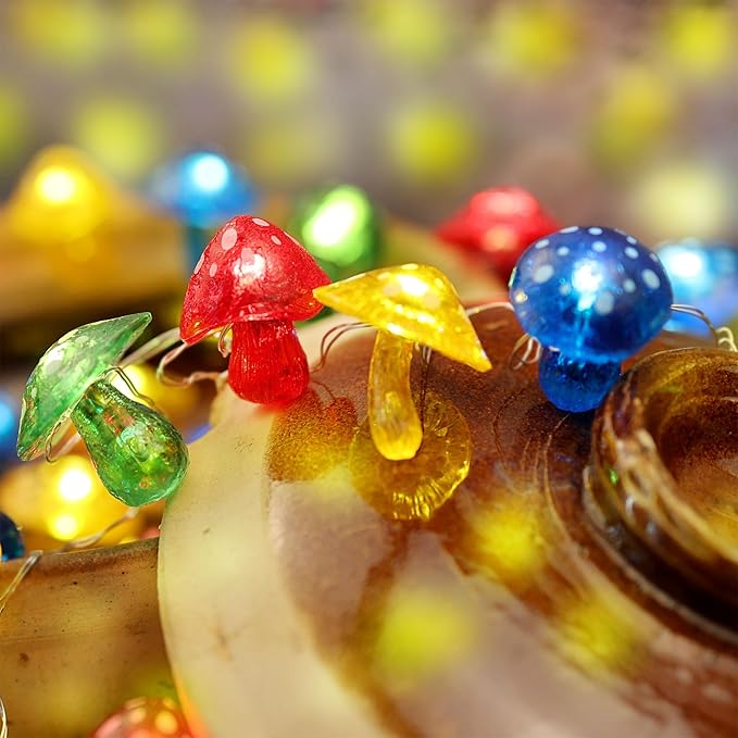 - Mushroom Decorative String Lights, Decorate Creatively: Mushroom icon size various from 0.98 to 1.2 inch, Our mushroom string lights feature a life like 3D design that looks just like real mushrooms.easily identified from far distance, gorgeous appearance, You can wrap it with mantle or stairs bar or hang it anywhere in your house.Bring color and fun to your Christmas with these delightful mushroom string lights.
