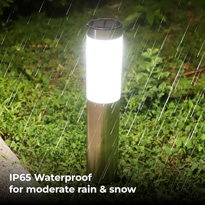 TECHKO Stainless Steel Outdoor Solar Bollard Path Lights (2-Pack), Solar Cylinder Pathway Lights (Stainless Steel)