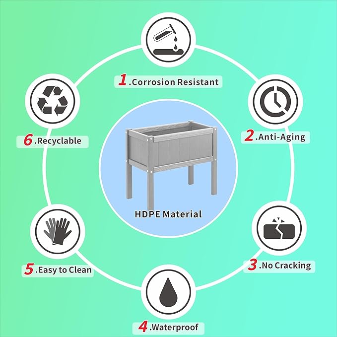 - ๐๐๐๐๐ฉ๐ฎ๏ผThis elevated garden bed does not require food-grade coatings. It is made from food-grade material (HDPE lumber) with the color of the board itself, environmentally friendly, and recyclable for secondary use