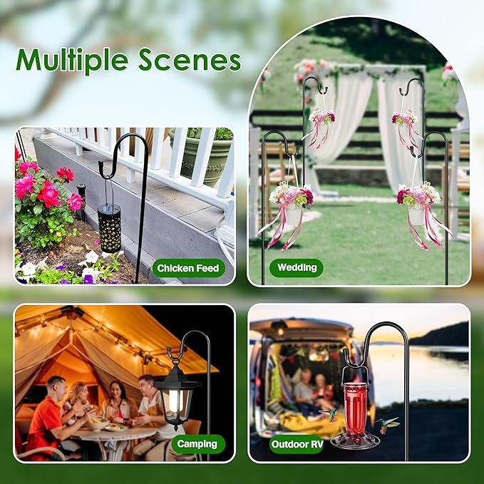 - Elegant and Sturdy Design: Our Shepherd's Hooks feature a classic and elegant design, perfect for enhancing the beauty of any outdoor space. Built with durability in mind, these hooks are crafted from high-quality materials to ensure long-lasting performance, even in tough weather conditions.