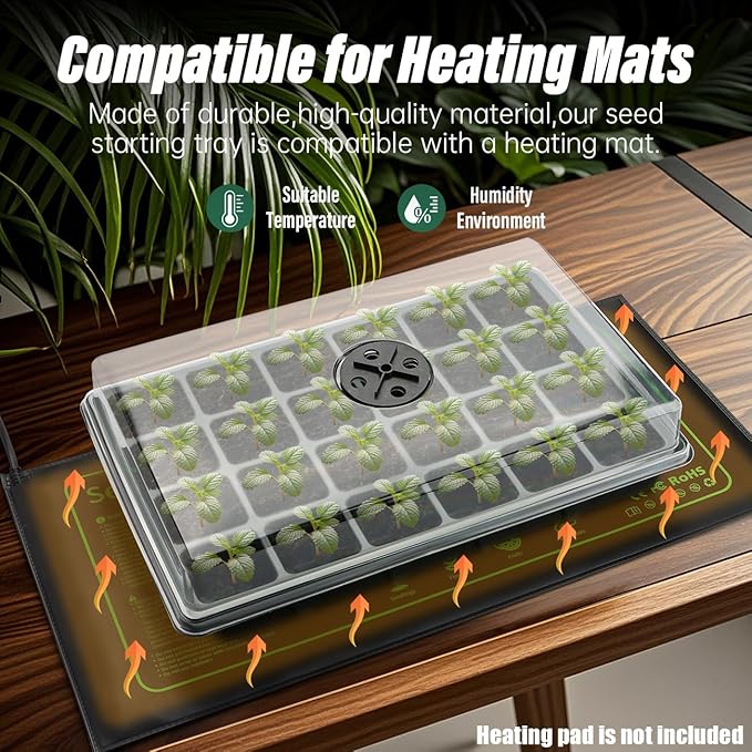 - 【With Transparent Lids】The 5 packs seedling starter trays also come with domes to keep the humidity level high and to ensure seed germination. The transparent lids provide a clear view of your sprouts' growth. The seeding starting trays are thoughtfully designed with touches like the transparent controllable vents that should make seedlings and cuttings very comfortable.