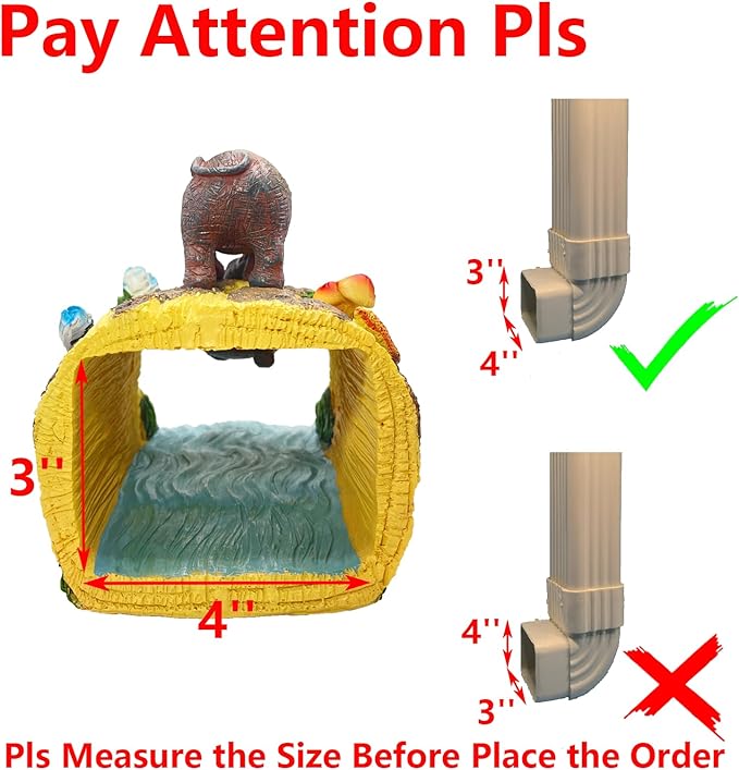 - Pay Attention The Fit Opening of Downspout Extender Decor: This charming elephants gutter downspout extension decoration measures 5.5” x 7.5” x 6.3”, fitting standard rectangular downspouts up to 3"x4". Please measure your downspout to ensure a perfect fit before placing your order.