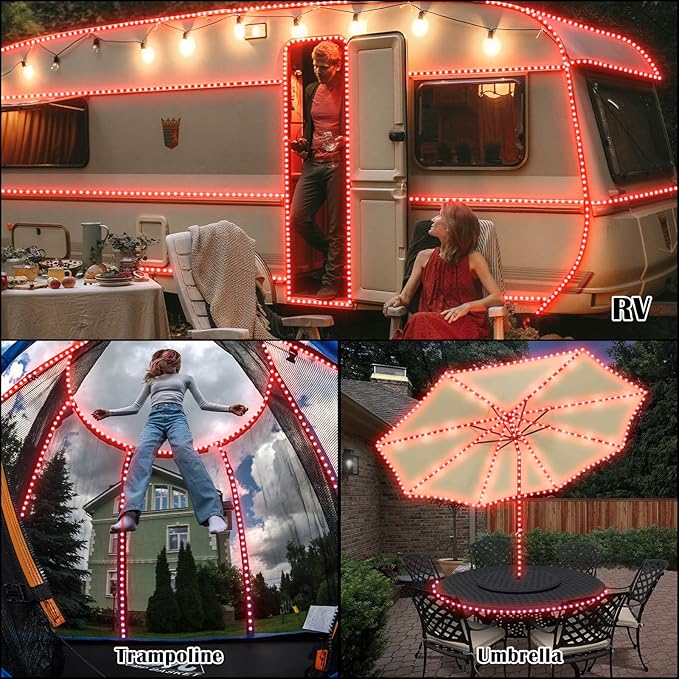 - Perfect Red Decoration: the rope Lights with red color suitable for Valentine's Day, Christmas, birthday, proposal, wedding, parties and other celebration occasions. LED rope lights flexible feature enables to be easily bent into different shapes perfectly, you can twine it on window, roof, garden, balcony, porch, hallway, fence, tree, trampoline, holiday tree to create an intense romantic atmosphere.