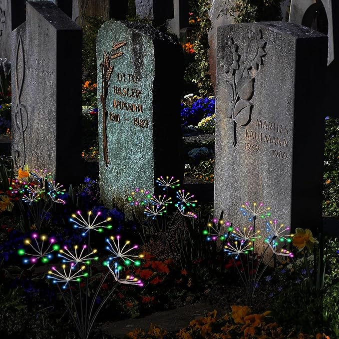 Kwaiffeo 4 Pack Solar-Powered Firework Fairy Lights, Solar Light Outdoor Waterproof Christmas & Garden Decor for Pathway/Patio/Yard - Gardening Gifts for Women (Multicolor)