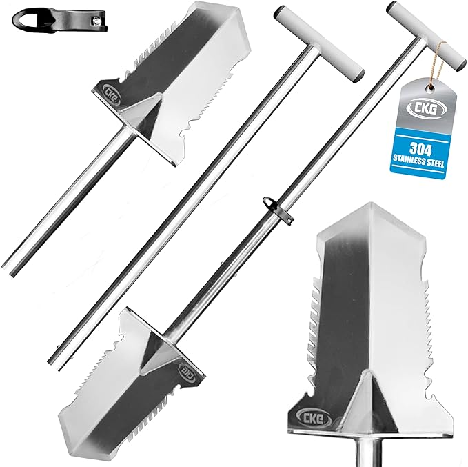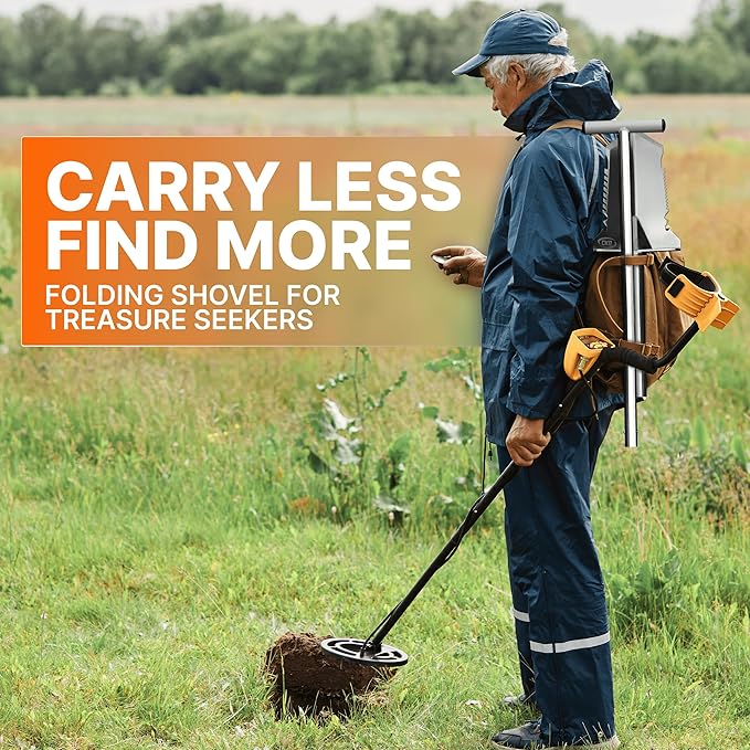 - Two-Piece Design: The metal detecting shovel disassembles for compact storage and easy transport, making it ideal for treasure hunting and versatile as a camp shovel.