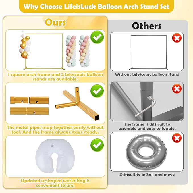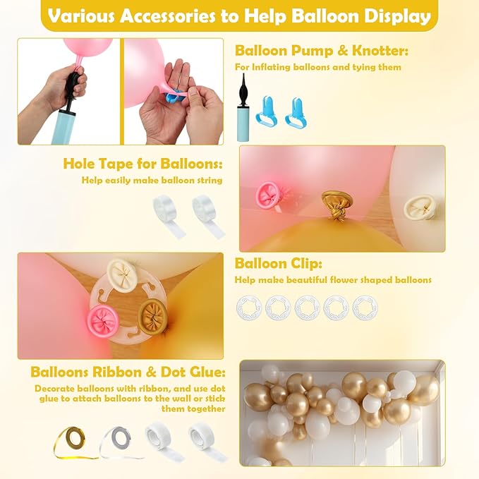 - 𝐂𝐨𝐦𝐩𝐥𝐞𝐭𝐞 𝐖𝐞𝐝𝐝𝐢𝐧𝐠 𝐀𝐫𝐜𝐡 𝐒𝐭𝐚𝐧𝐝 𝐊𝐢𝐭: This versatile backdrop arch stand includes essential accessories such as 2pcs of dot glue, 2pcs of balloon chains, 50pcs of balloon clips, and 2pcs of balloon weights, allowing you to create a stunning balloon garland stand. The kit also comes with 2pcs of iridescent balloon ribbons and a hand pump for easy balloon inflation, making it a complete solution for your decorating needs.
