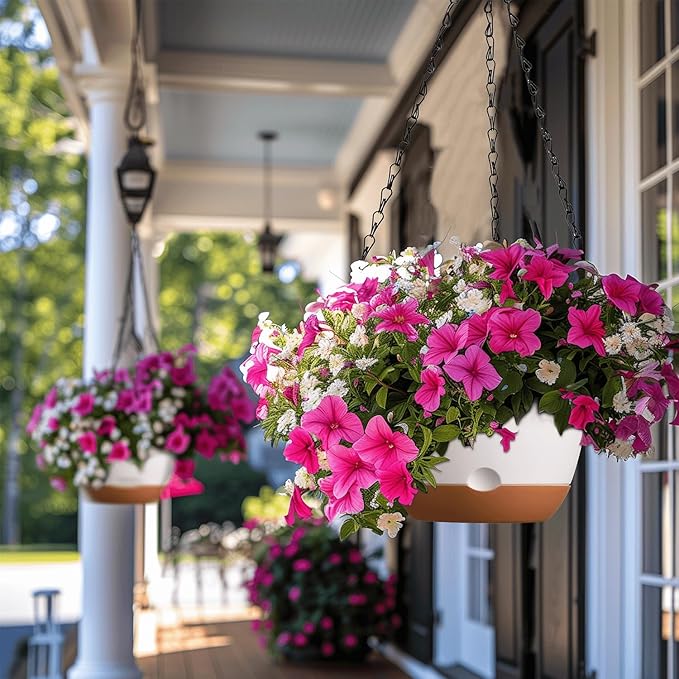 • 【2 Set 8-Inch Hanging Flower Basket】Transform your plant displays with our 8-inch self-watering large hanging planter. Ideal for a diverse range of plants, from bright flowers to thriving ferns and succulents, these 8" hanging pots offer generous space for your greenery. Good for creating eye-catching botanical arrangements, our hanging plant holder is suitable for both indoor and outdoor settings.