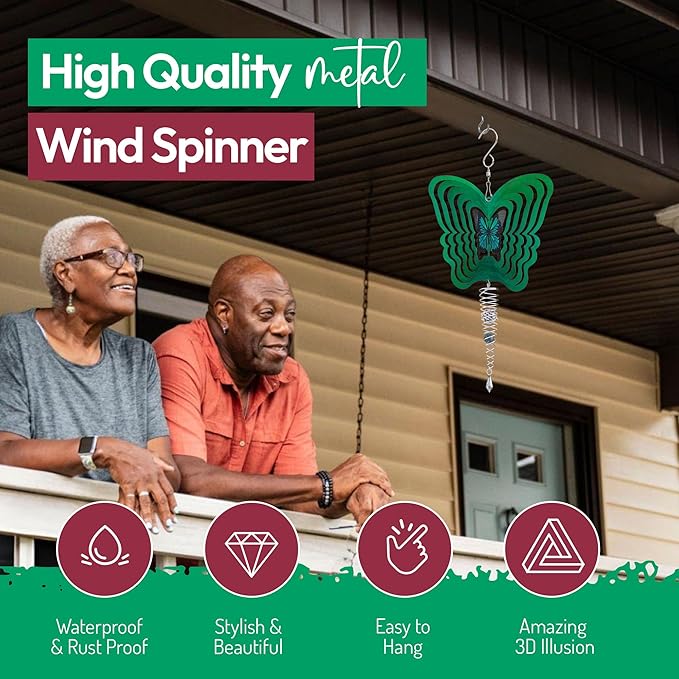 - Easy Installation – Each set includes a sturdy swivel hook for effortless hanging. Whether displayed in your garden, yard, or on your porch, this butterfly wind spinner is easy to install and enjoy.