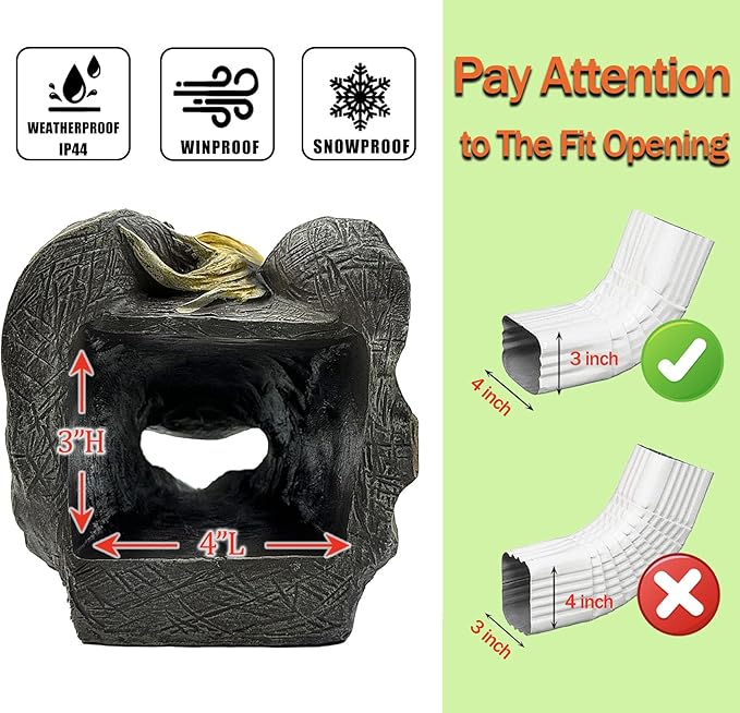 - Pay Attention The Fit Opening of Downspout Extender Decor: The vivid animal decor gutter downspout is fitting rectangular downspout opening up to 3"in Hx 4"in L.Simply connect the downspout,the extension splash block will fit your garden downspout tightly and perform nicely.