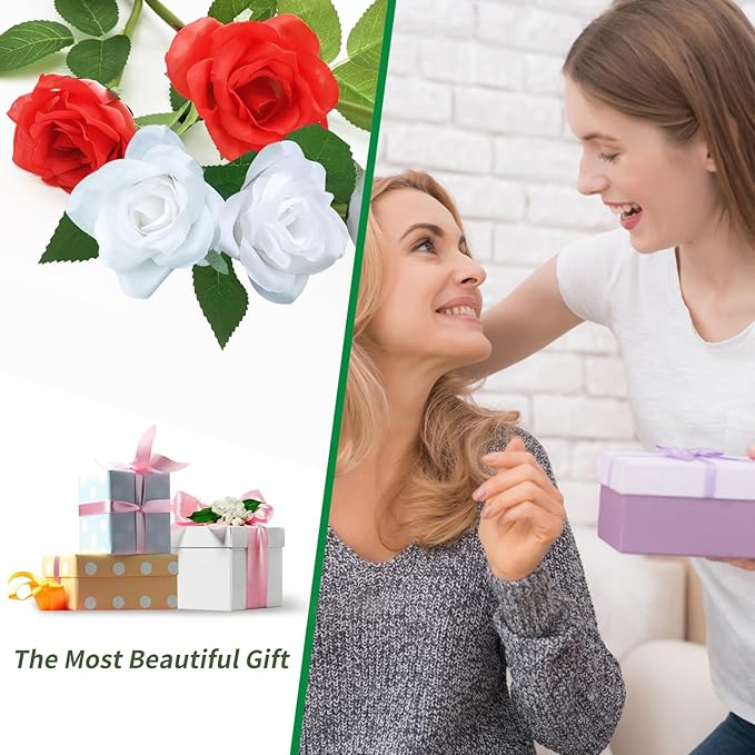 Solar Garden Lights, Solar Outdoor Lights with More Realistic 20 Rose Waterproof Solar Powered Flowers Lights for Outside Patio Yard Pathway Decorations, White and Red