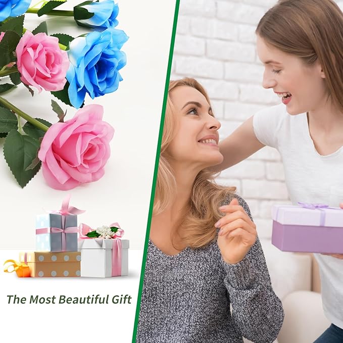 Solar Garden Lights, Solar Outdoor Lights with More Realistic 20 Rose Waterproof Solar Powered Flowers Lights for Outside Patio Yard Pathway Decorations, Blue and Pink