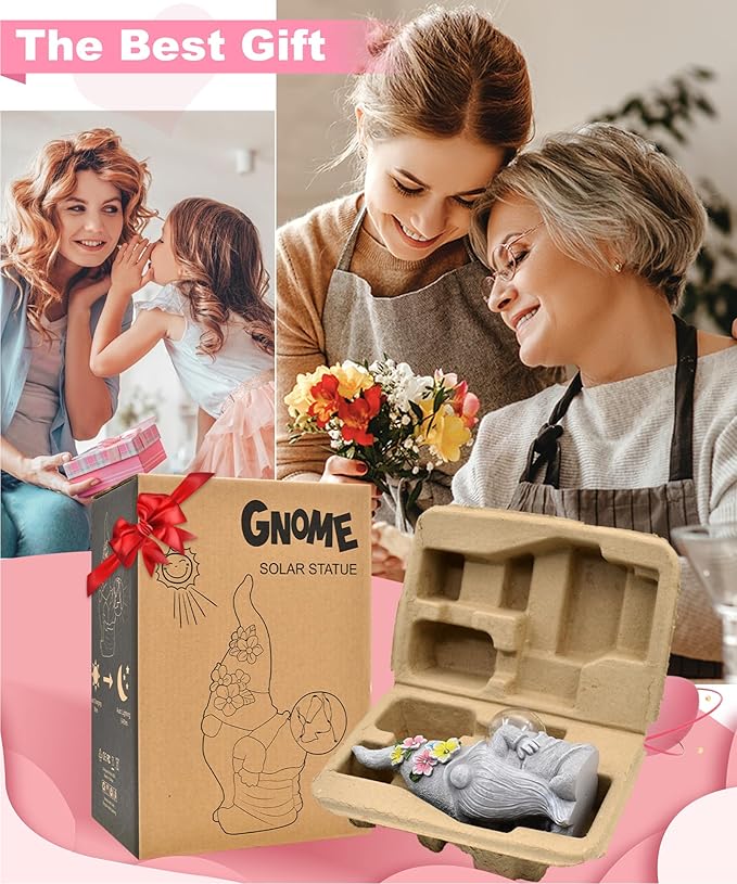 Solar Gnome Statue for Garden Decor: Outdoor Sculpture for Yard Lawn Porch Balcony Patio - Ideal Gift for Lover Mom Women Grandma