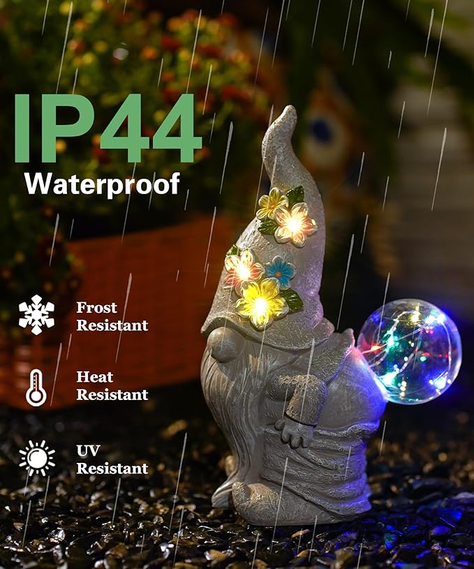 - High - Quality: This outdoor solar statue is equipped with a high - efficiency monocrystalline silicon panel and an aluminum battery, featuring fast - charging and long - lasting lighting. With an IP44 waterproof rating, it is perfect for outdoor use. No need to worry about rain, snow, frost or sleet. It is robust and can endure all kinds of weather conditions