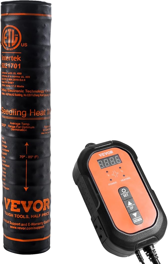 VEVOR 10"x 20.75" Seedling Heat Mat w/Digital Thermostat Combo Set, MET-Listed Heating Pad for Seed Starting, Waterproof Seed Mats for Germination, Indoor Gardening, Hydroponic, Greenhouse, 1 Pack