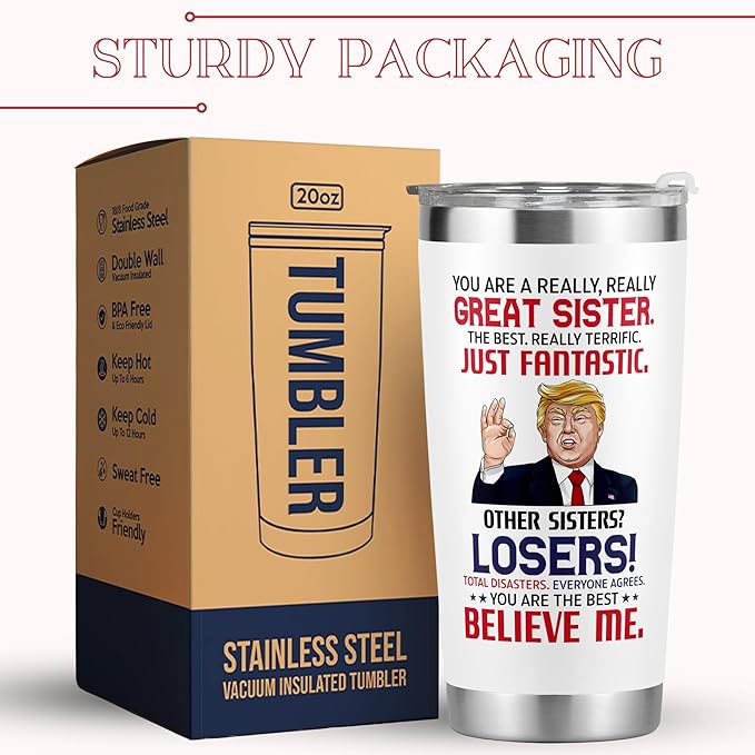 - SISTER GIFTS FROM SISTER: This Tumbler for Sister will definitely be a humorous reminder for your beloved Sister that how much she means to you. Suitable for gifts for sisters from sisters, gift for sister, big sister gifts, big sister gifsister sisters gifts brother birthday happy big little girls cool can glass funny women christmas xmasts for little girls, gifts for sister in law, cool gifts for sisters, sisters gifts, gifts for sisters, gifts for sister from brother, gift for sisters from sister, funny sister gifts ...
