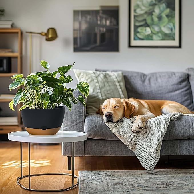 - 【Morden Minimalist Appearance】Koalaime large self watering pots have a matte textured surface with a flat round unique shape, looks very stylish. Ideal for landscaping your garden, living room or office, etc. Koalaime Planter is the perfect gift for plant lovers.