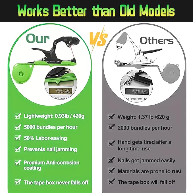 - Easy Operation: With single handed operation, this tying machine easily binds plants to support stakes and wires. It is user friendly, highly efficient, and does not damage the equipment, making it simple for anyone to use.