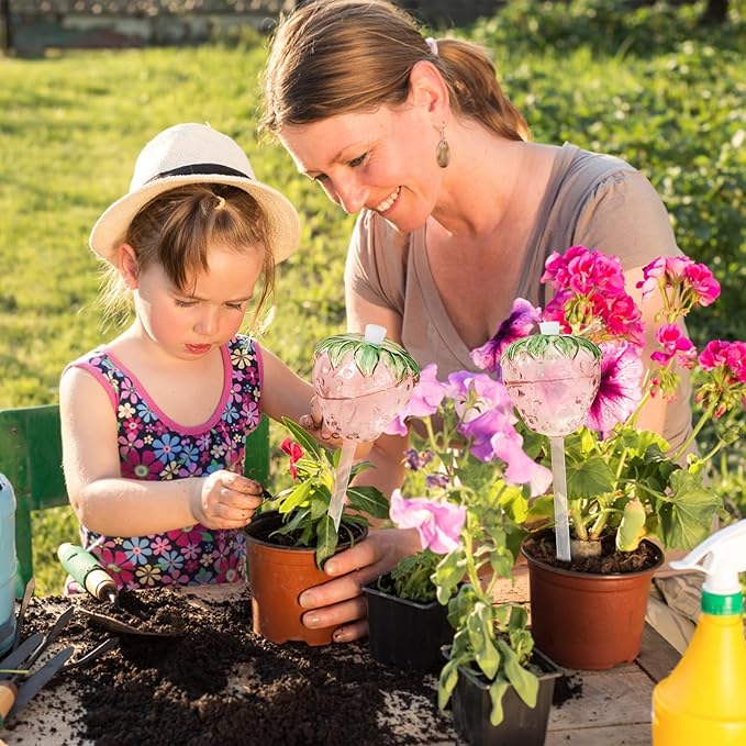 - 【Unique Straberry Shape】 Inspired by the bright red strawberries covered with dew in the fields in early summer. Made of high-quality borosilicate glass, each watering globe is hand-blown, polished, and hand-painted, with a unique shape, crystal clear appearance, and resistance to breakage. It is not only an indispensable tool for your indoor plants, but also the most eye-catching decoration in your beautiful garden.