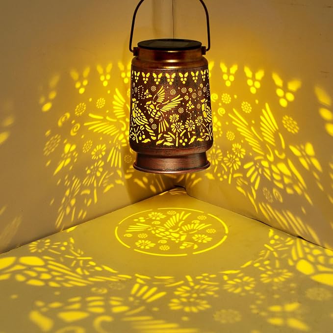 - Perfect Garden Decorations: Kyoryuger solar lantern can project unique and beautiful patterns in a dim environment, creating a gorgeous and warm atmosphere to bring life and fun to your garden and attract your family or friends. The unique hollow out design and beautiful antique bronze color give it an artistic touch, perfect for decorating gardens, backyards, corners, Outside, sidewalks and many other scenes.