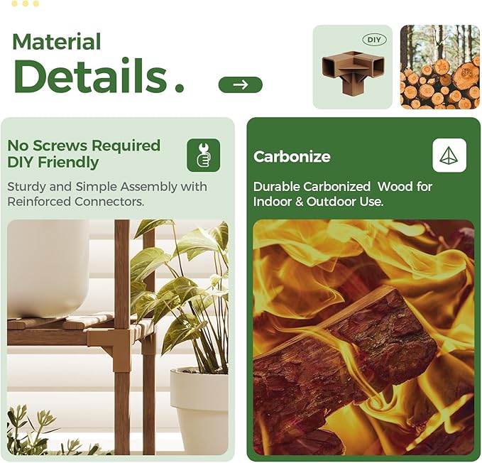 - Durable and Sturdy: This plant stand requires no screws and is perfect for DIY enthusiasts. Utilizes the clever application of the triangular stability principle to enhance stability. Additionally, plastic joints reinforce the structure of the plant stand, ensuring its durability.