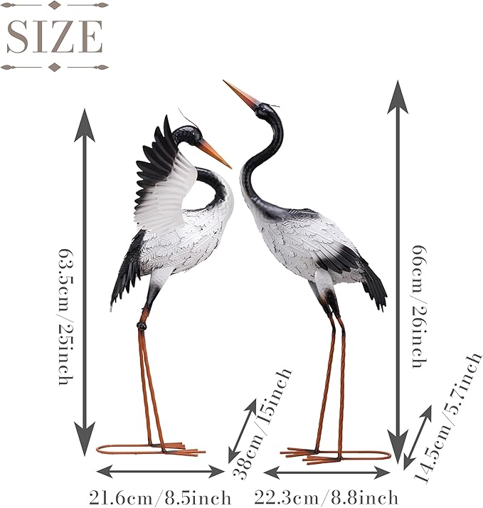 TERESA'S COLLECTIONS Yard Decorations Outdoor Garden Statues, White Metal Crane Yard Art, 25-26inch Lawn Ornaments for Backyard, Outside Porch, Patio, Wedding Decor,Set of 2,Spring Decor,Gifts for Mom