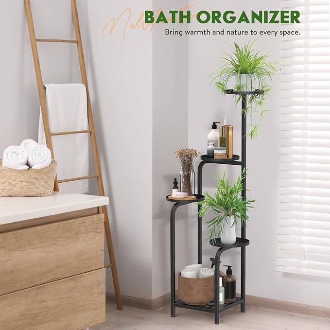TOSKING 5 Tier Metal Plant Stand Indoor 48''H Tall ,Heavy Duty Plant Shelf , Corner Shelf Flower Pot Stand for Outdoor Plant Stand for Living Room Balcony Garden Patio Bedroom (Black)