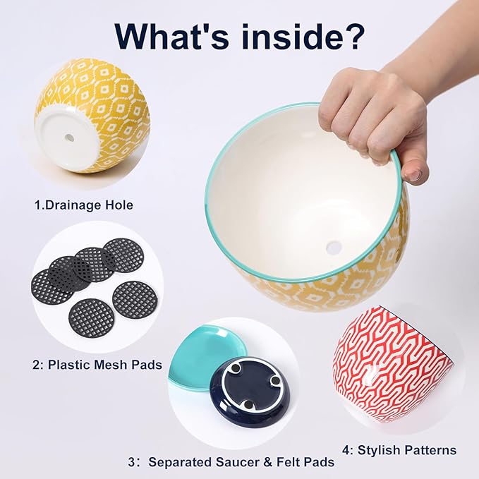 - Special Feature : Drainage Hole, Separate Saucers, Mesh Pads