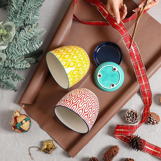 Selamica Ceramic Plant Pots, 5.6 Inch Flower Pots for Indoor Plants, Planters with Drainage Hole and Saucer, Garden Pots for Succulent, Orchid, Home Decor, Set of 4, Assorted Colors