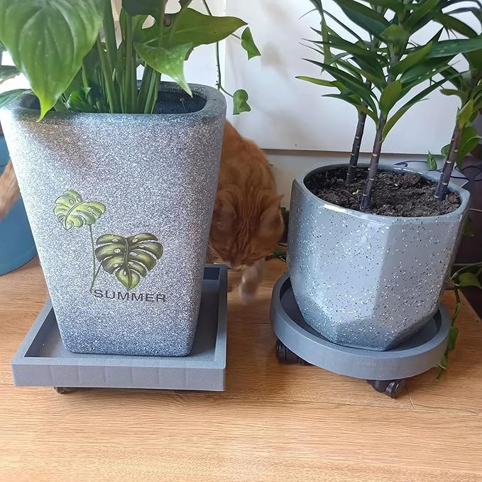 - [Indoor & Outdoor Practical Use]: It's designed to run on patios, wooden floors for outdoors. Also the caddy rolls smoothly over hardwood, concrete, and even carpet, which is perfect for indoor use. Not only suitable for plant pots, but also for anything in your home that needs to be moved, such as an umbrella, humidifier. Three available colors and sizes to perfectly match your home decor or garden.