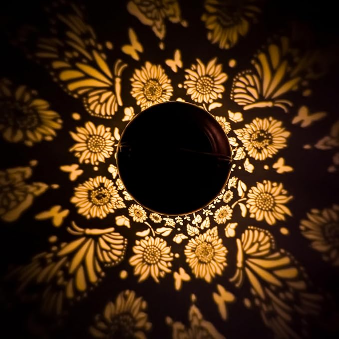 - Stylish Pattern Design: Our outdoor solar lanterns feature stylish and beautiful Butterfly and sunflower patterns. Whether you hang the lantern on a tree or place it on a flat surface, it will cast charming patterns around. The unique patterns bring a breath of nature to your outdoor space, making it more inviting and visually appealing.There is the switch ON/OFF on the lantern cover, please make sure to Press the Button before charging.