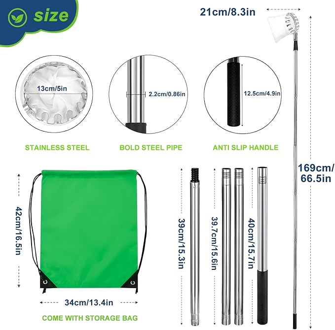 - Easy and Practical Installation: Equipped with 4 metal poles, a picker tool head with a fabric bag, and a storage bag. Assembling all the parts by twisting them together takes only a few minutes without requiring additional tools.