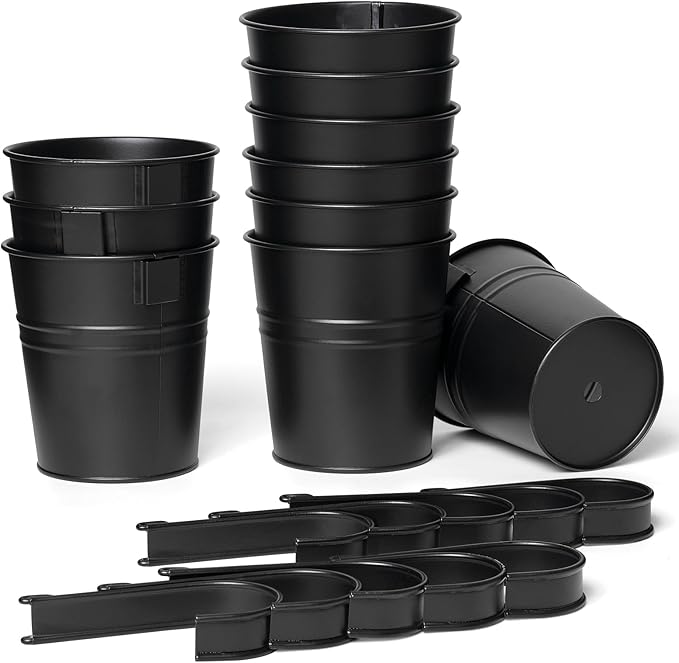 Dahey 10 Pcs Hanging Flower Pots Metal Iron Bucket Outdoor Planter for Railing Fence Balcony Garden Home Decoration Flower Holders with Detachable Hooks, Black, 5 Inches