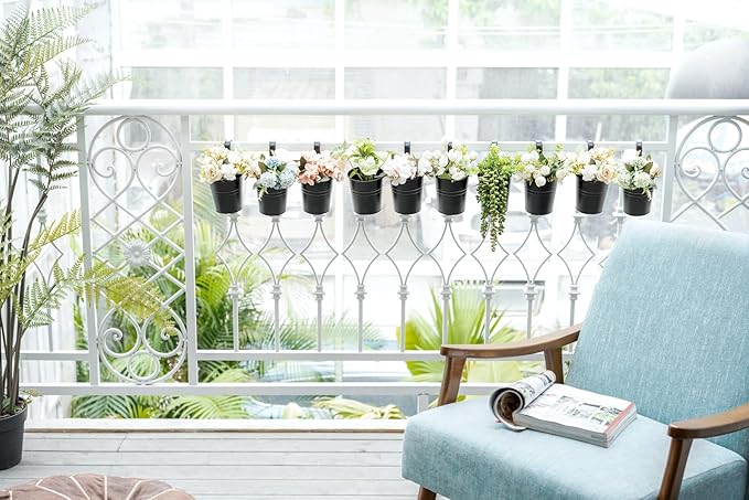 - These special metal bucket pot with an attached hook,can be hung on the railing, balcony, window, anti-theft net, trellis,fence,indoor or outdoor anywhere,also can be used as desktop