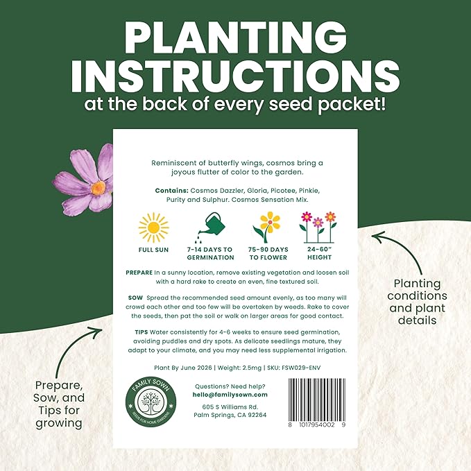 - GIFTABLE PACKAGING: Share the love of gardening with Family Sown's beautifully designed seed packaging. Crafted for freshness and ease, each pack includes simple planting instructions and a reusable zipper — an ideal gift for any nature-loving friend or family member.