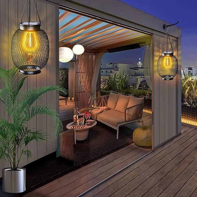 - Stylish Design: These hanging lanterns feature a sleek wire mesh exterior with a rustic metallic finish, creating an eye-catching and modern look.