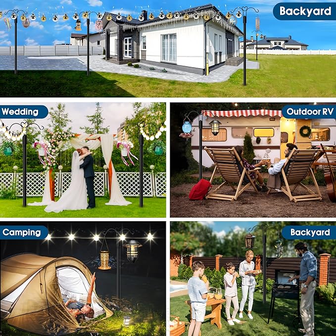 - Dual Hook Design: The double hooks are versatile and can hold multiple bird feeders, bird baths or flower pots, convenient for hanging decorative flowers and outdoor string lights, a practical and stylish embellishment in your garden.