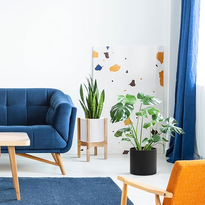 - A Complete Set: Minimalist plastic planter, combined with a sculptural, solid wood stand that match perfectly together and looks great in any home.