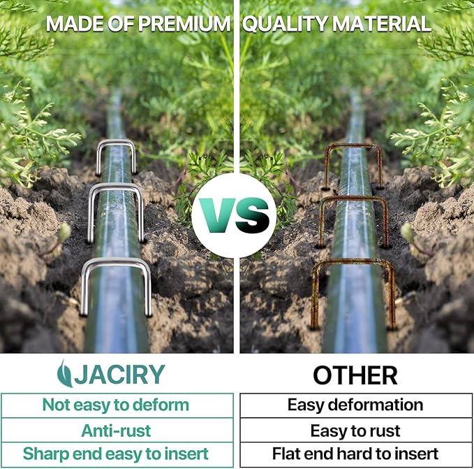 - 【Easy To Use】Yard staples or Lawn Stakes are essential tools for securing landscaping fabrics, drip irrigation lines, and netting in place. Their sharp ends make them easy to insert into sod or soil. Their ease of use simplifies the task of securing various items in the garden or yard, saving time and energy for more important gardening tasks.
