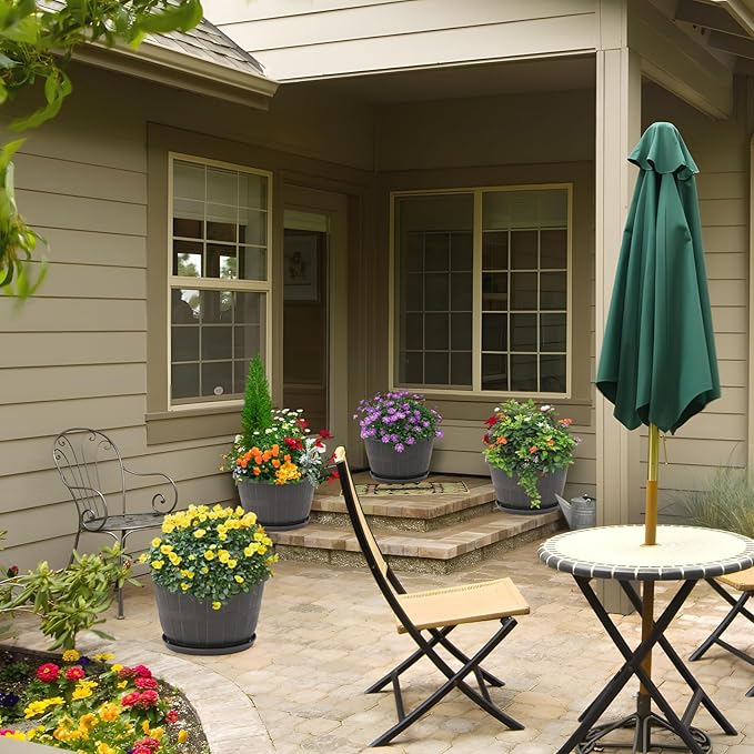 - 【Indoor Outdoor Planter】10 inch plastic flower pots can be used to decorate your indoor areas such as living room, bedroom, windowsill, tabletop, shelf, or outdoor in your garden, foyer, yard, patio, office, etc. Garden planter container in rolled rim will be easy to move when need. Enjoy the planting process and the beauty these plant pot will hold!
