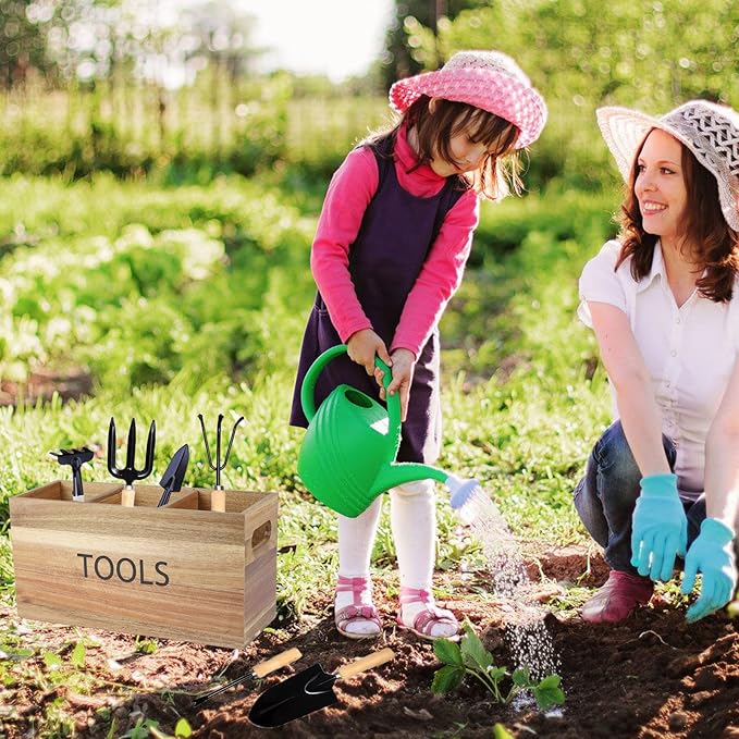Garden Tool Basket Wood Utensil Holder for Gardening Kit Organizer Garden Hand Tools Arrange and Display Storage - Gardening Gifts for Women Men 11.8" L x 4.6" W x 6" H for Pruning Shears, Cultivator