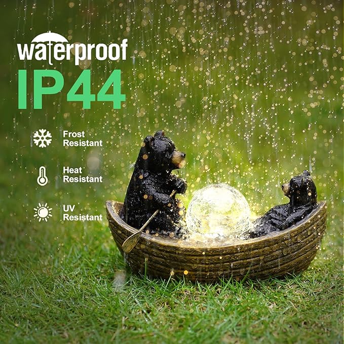 Solar Bears Boating Statues with Cracked Glass LED Lights – Funny Resin Bear Decor Garden Decorations for Patio,Balcony,Yard,Birthday Gifts for Women Mom