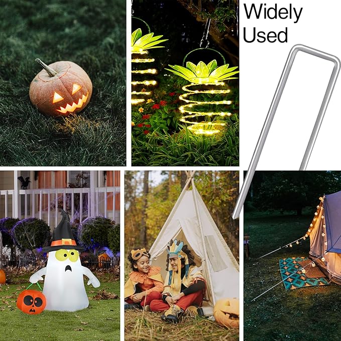 - [Material] -Heavy Duty Garden Staples are Made of durable materials such as galvanized steel, these ground stakes provide the strength and stability needed to withstand harsh weather conditions and keep items like weed barrier fabric, landscape fabric, turf, and netting securely anchored to the ground.
